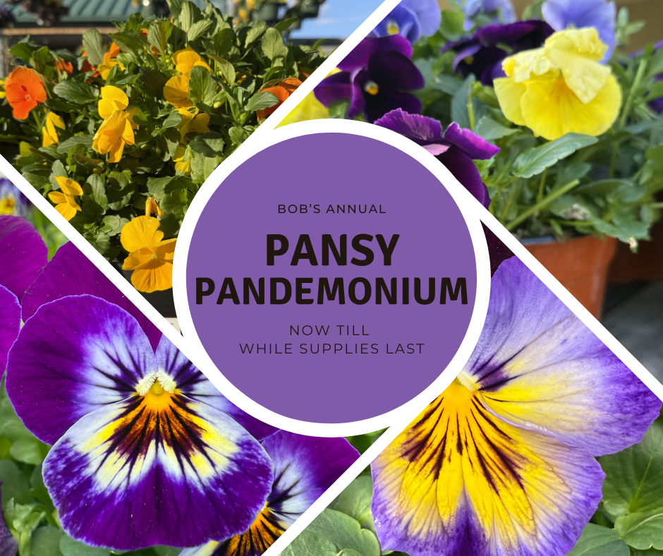 Stop in during Pansy Pandemonium and bring home the colors of spring!